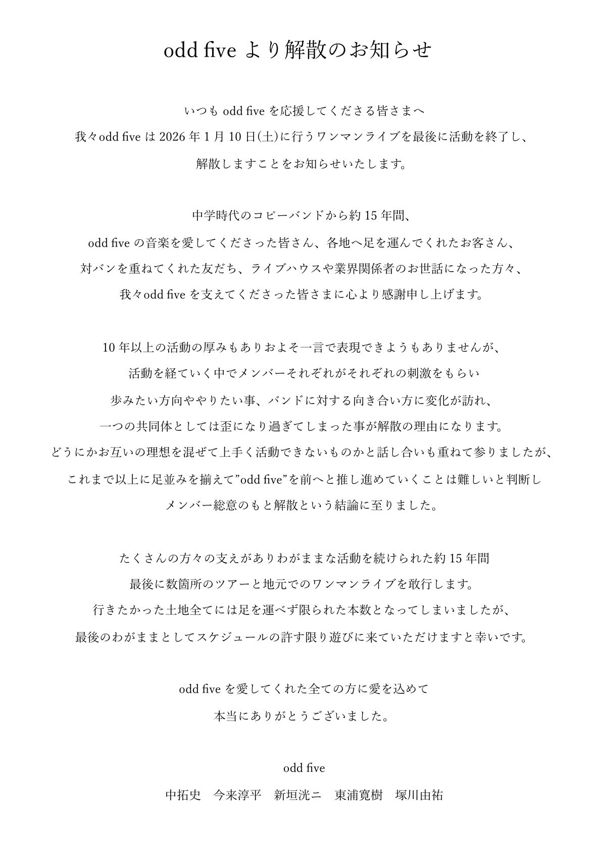 | 2016.03.15 | Official HP 新設! これからもodd fiveをよろしくお願い致します。 |