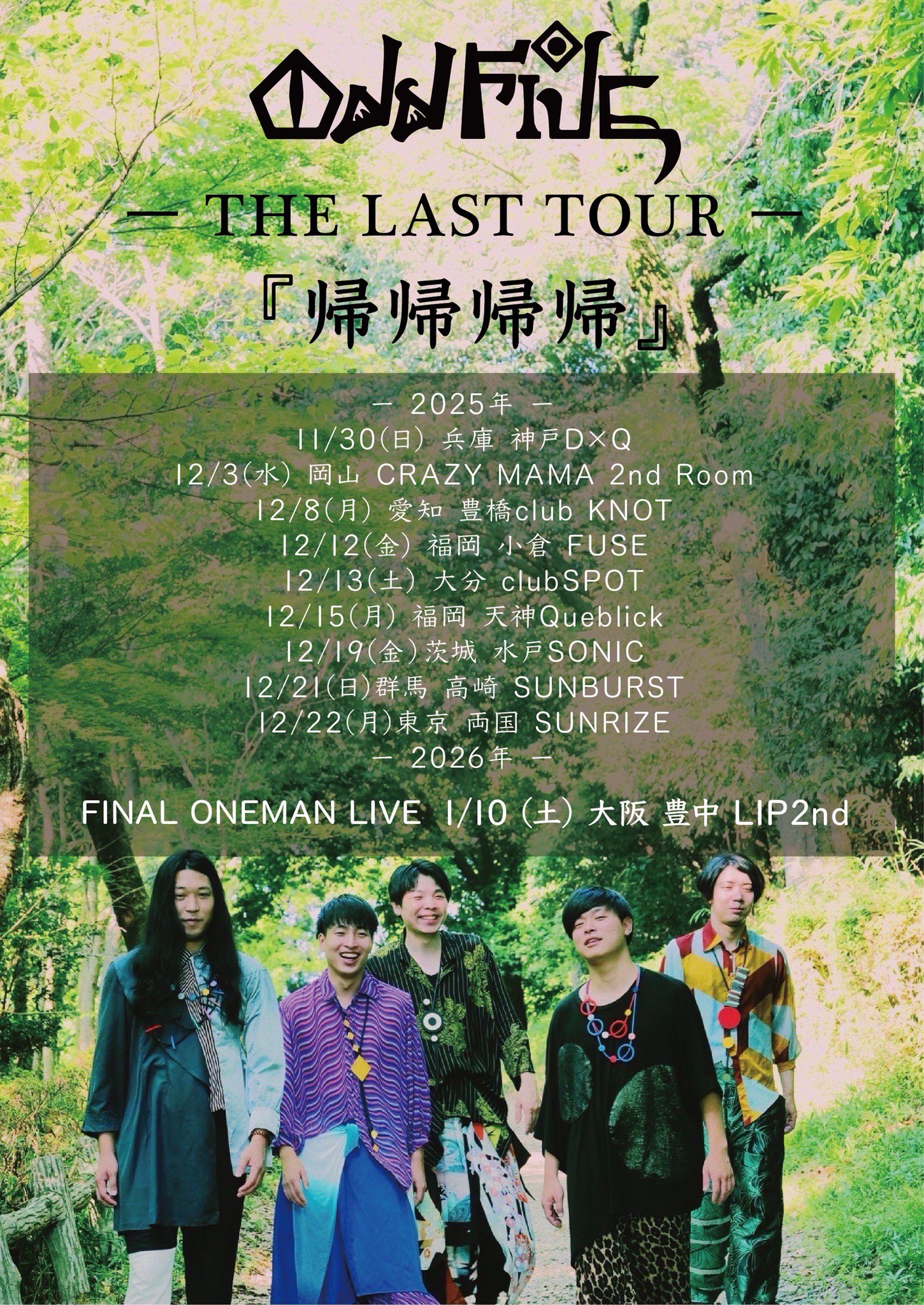 odd fiveを応援してくださっている皆さま、この度はツアースケジュールの一部に間違いがありまして、大変ご迷惑をおかけいたしました。 8/12 @大分SPOT ※下記告知画像は修正してありますので、よろしくお願いいたします。 |